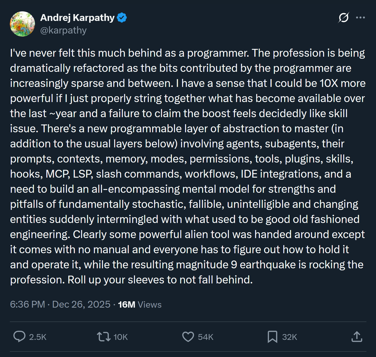 Karpathy (OpenAI co-founder) says AI could make him 10x powerful: