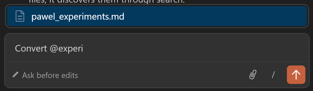 Type @ to reference any file from your workspace. Genuinely better than in Cowork for engineering workflows — you get autocomplete across the entire project:
