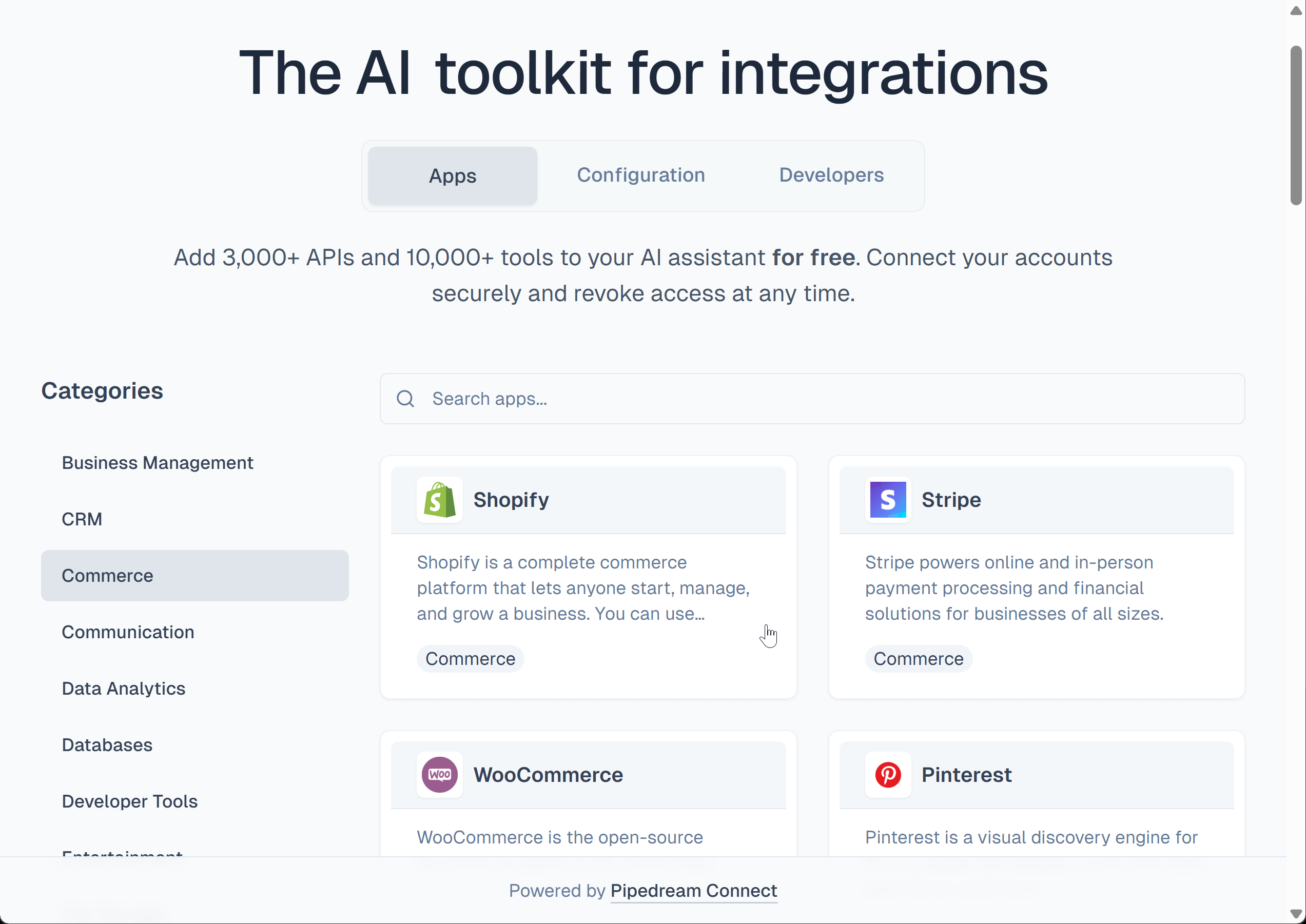 To add more, you can use Pipedream MCP (a free platform) to connect to 1,000s of APIs and apps with a single MCP server: