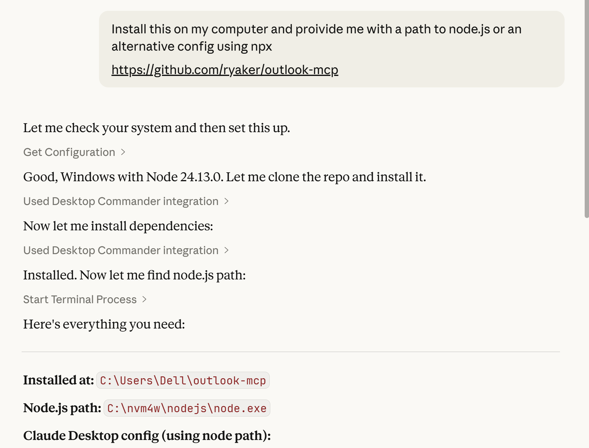 Example 1: Claude Desktop installed and configured an MCP server based on the URL