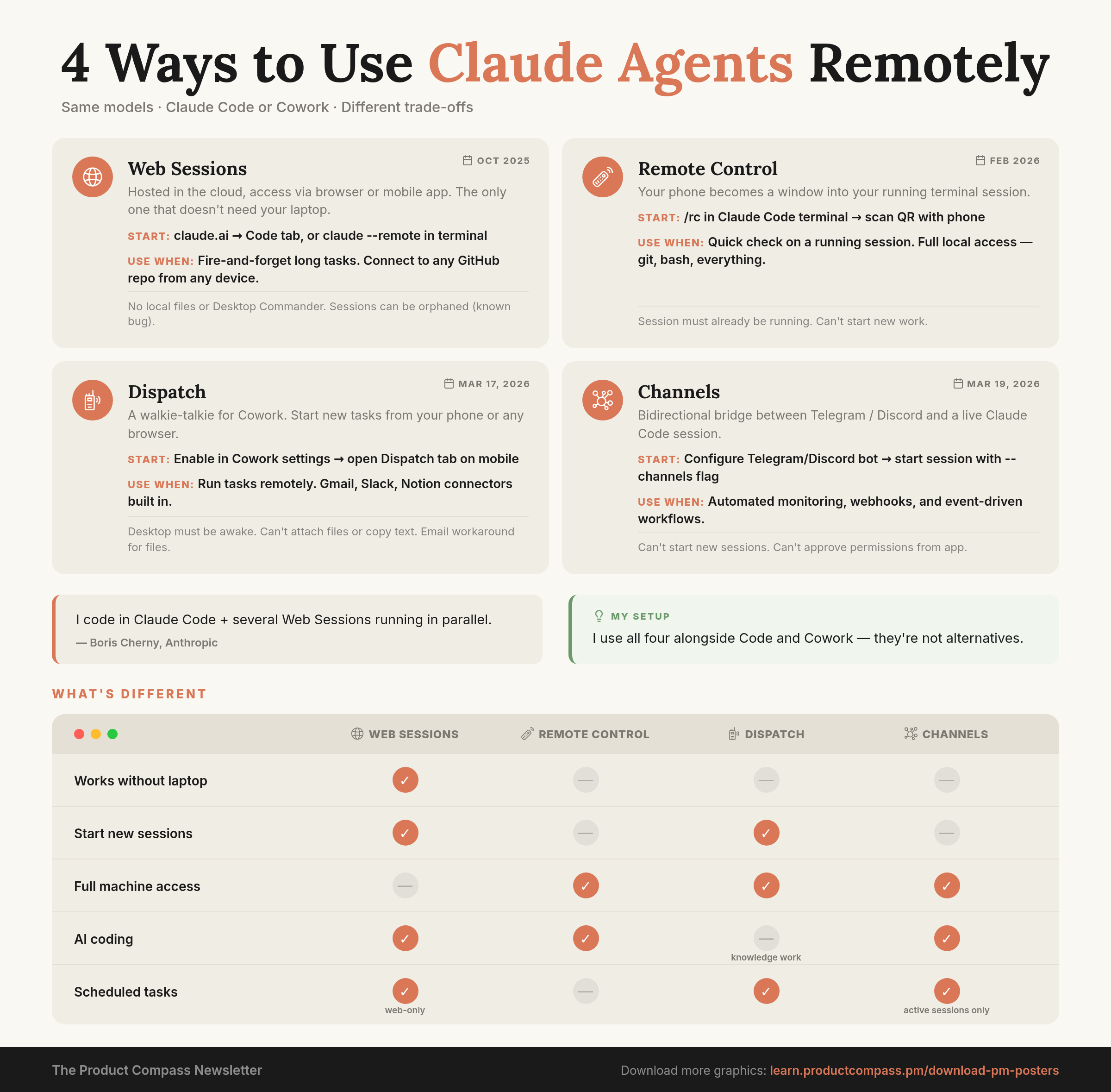 5. Claude Dispatch vs. Remote Control vs. Web Sessions vs. Channels: When to Use Each