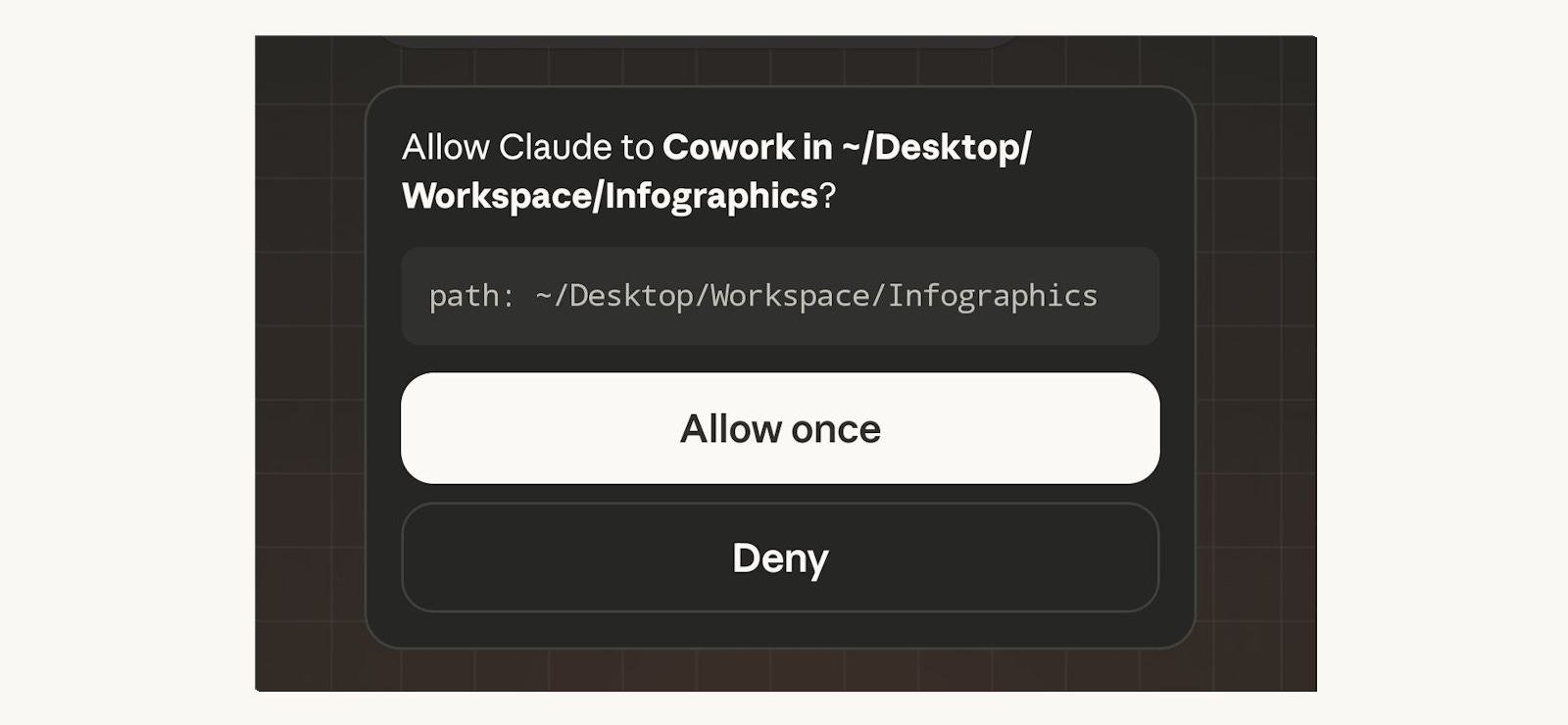 On desktop Cowork, you click a folder icon to grant file access. On Dispatch, there’s no folder picker UI on mobile. You type the path: “Give yourself access to ~/Desktop/Workspace/Editor.”