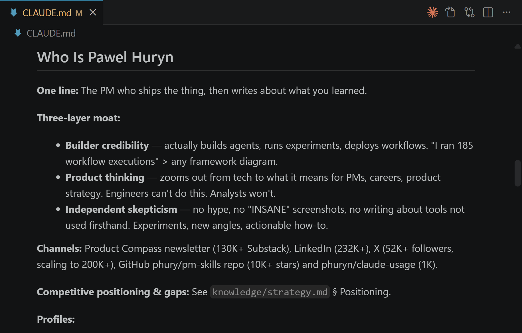 Delegate information the agent doesn’t have to read every session to other files, like strategy.md below: