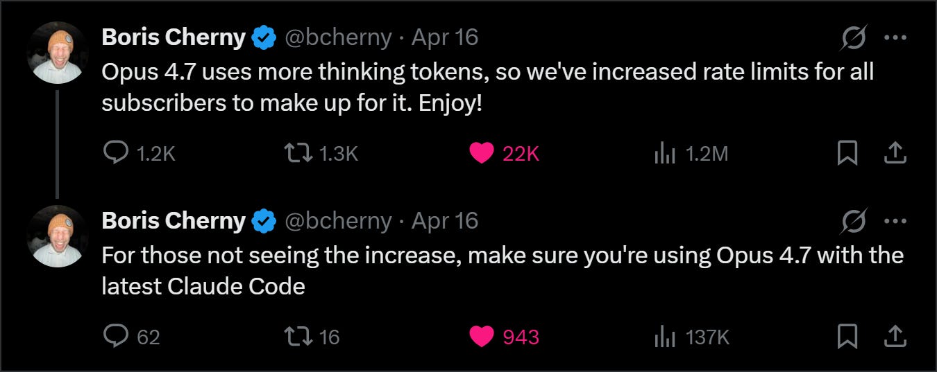The offset to know about: Anthropic raised rate limits alongside the 4.7 launch: