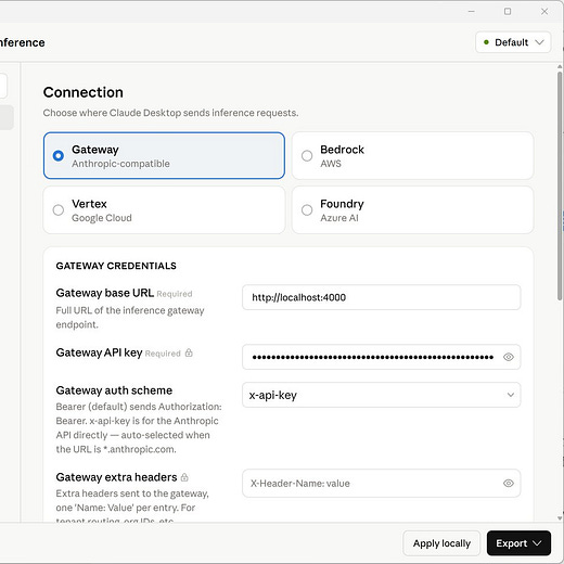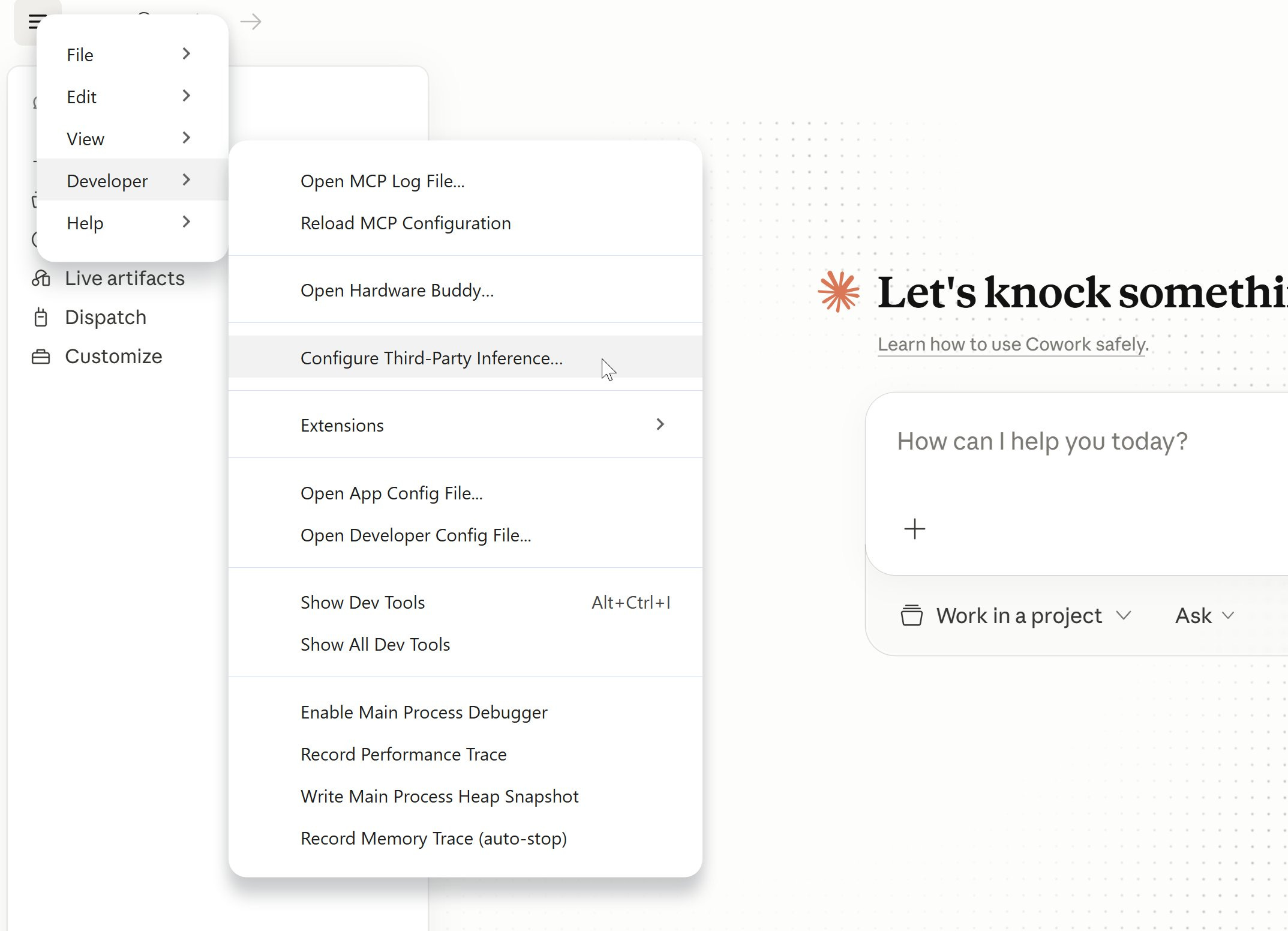 Menu → Developer → Configure Third-Party Inference