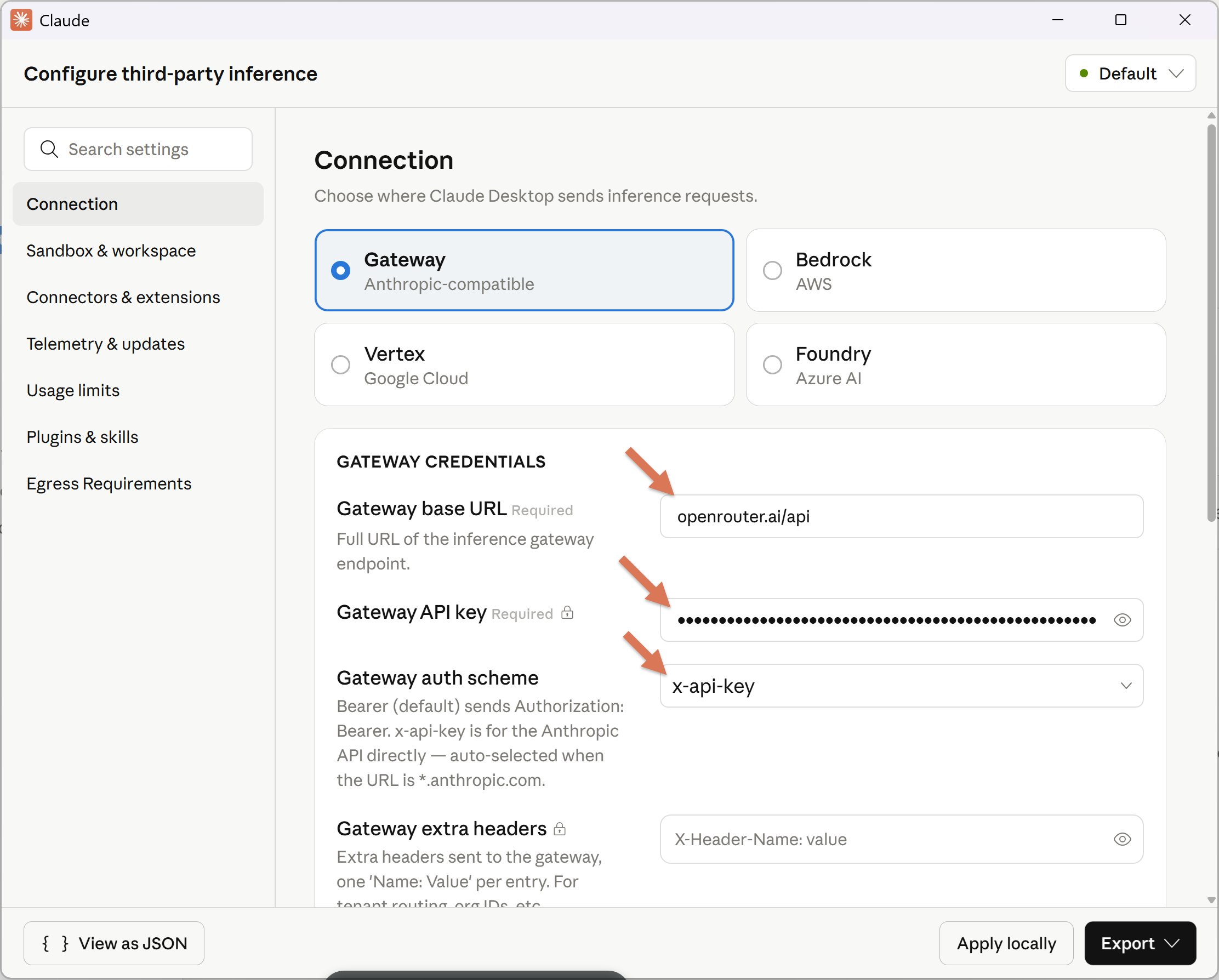 Gateway API key: your OpenRouter key