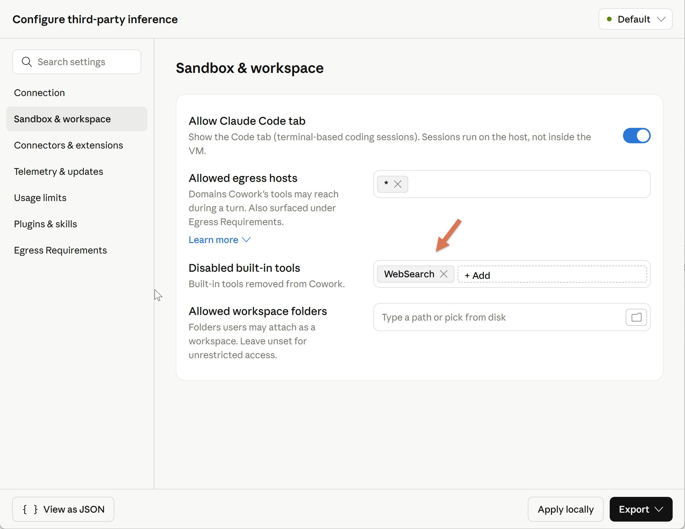Remove built-in tools from Cowork