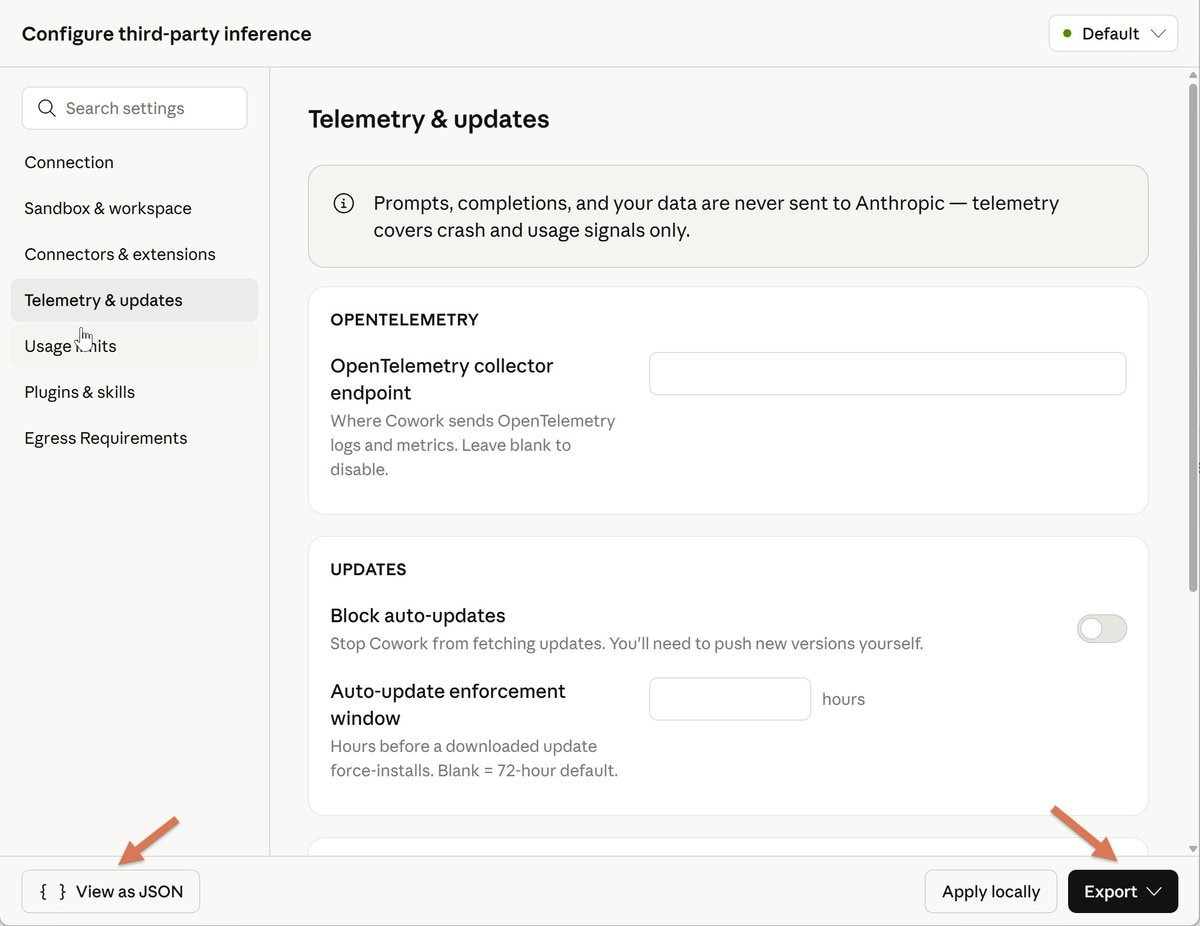 Cowork on 3P is designed for organizations whose security, regulatory, or contractual requirements prevent them from sending data to Anthropic’s first-party infrastructure.