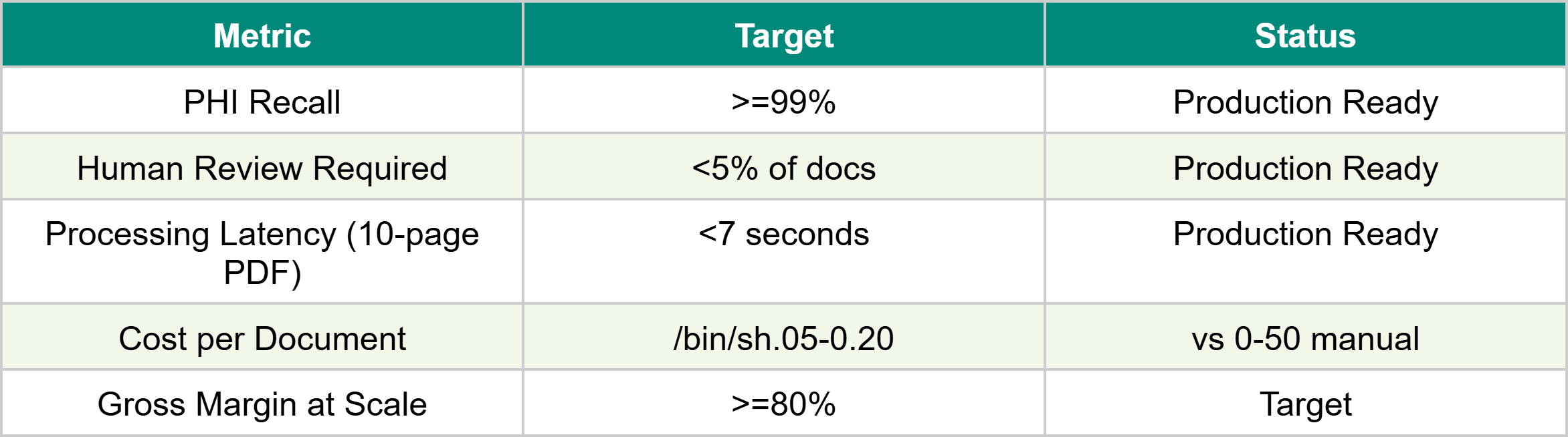 Manual PHI review typically costs 0-50 per document. Automated PHI redaction with AI costs /bin/sh.05-0.20 per document at scale, including Claude API costs and selective human review for the ~5% of escalated documents. At 1,000 documents/day, this represents savings of 0,000-50,000 daily compared to a fully manual workflow.