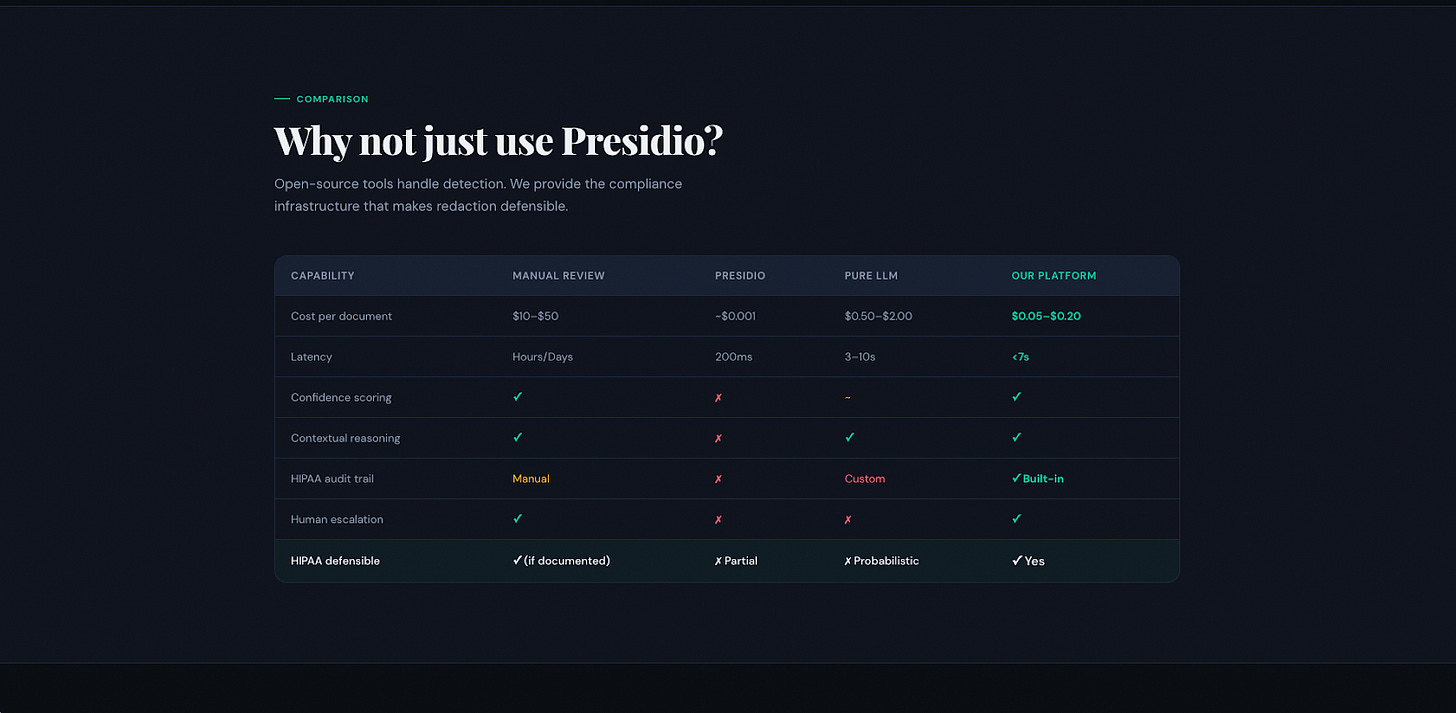 What is the competitive moat for PHI Redaction-as-a-Service?