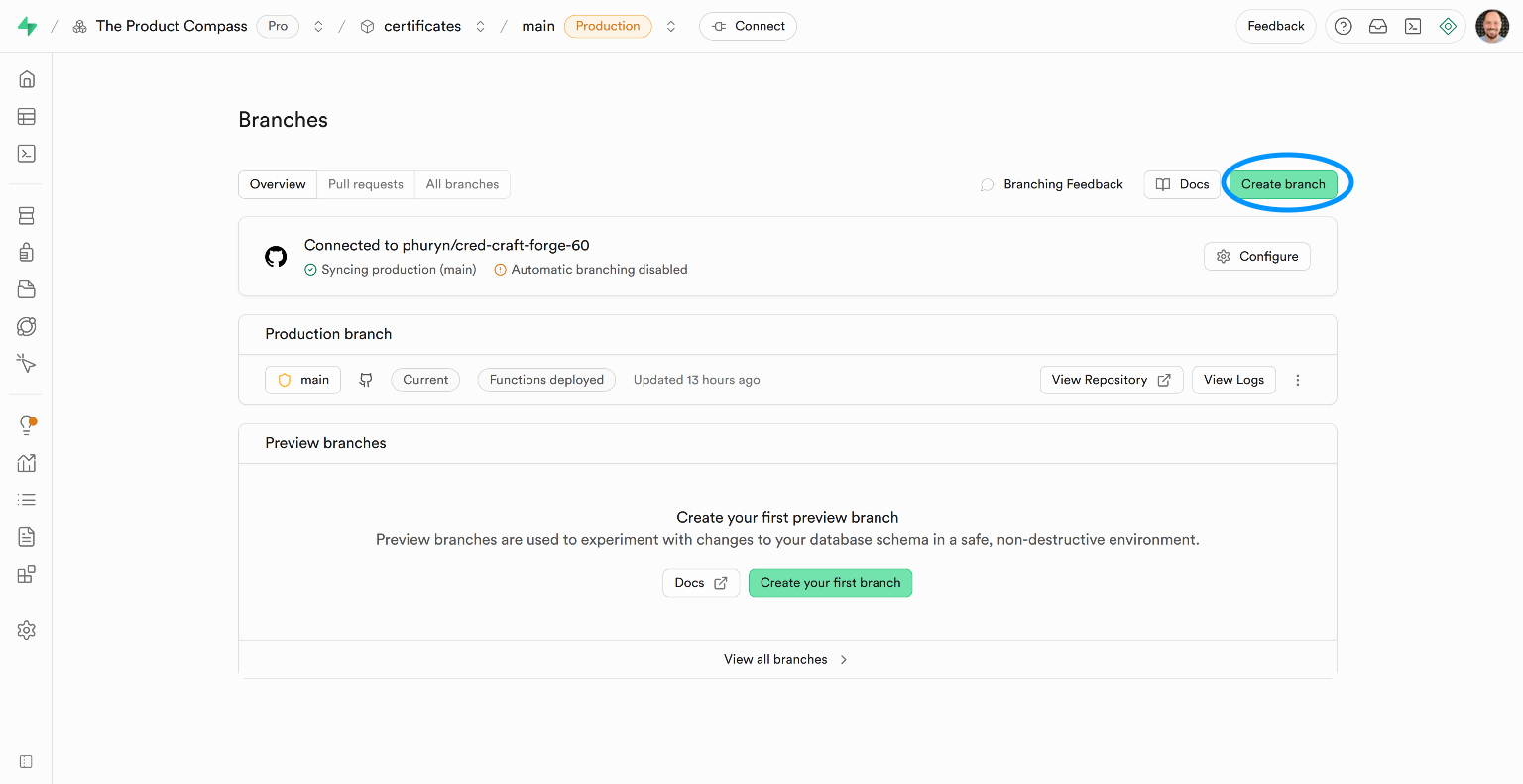 The result: You have a new Supabase branch for the new environment. All database changes will be deployed automatically.