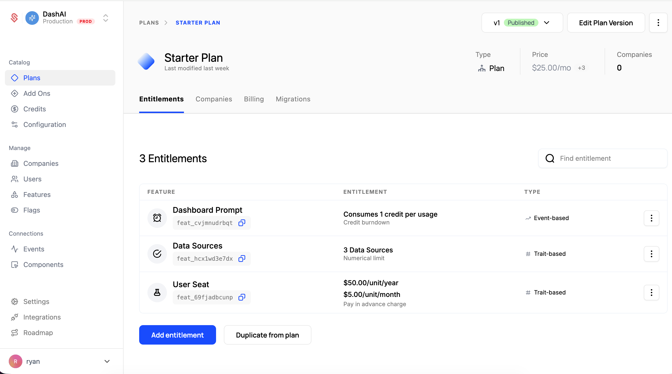 With their product catalog and entitlements already modeled centrally, the launch sequence was additive: define the new features, set the usage limits, configure the tiers, and ship.