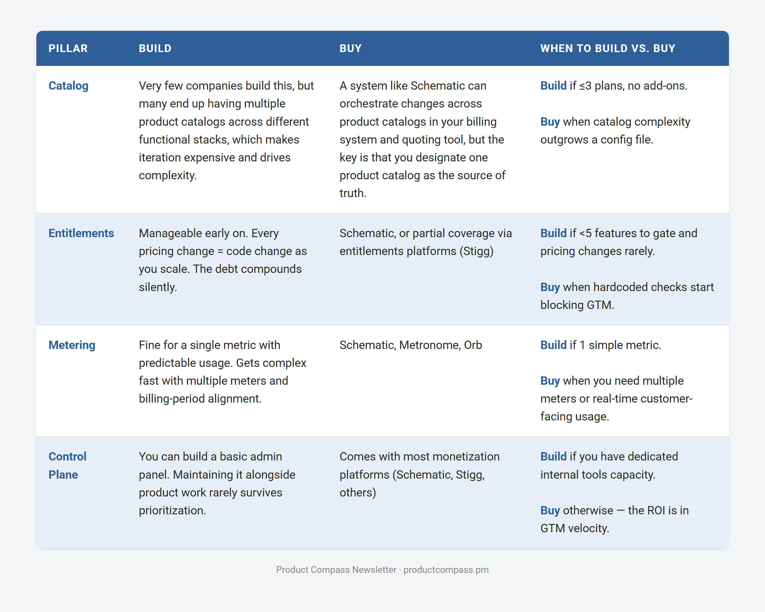 Build vs. buy matrix — and an honest “when you don’t need this” section