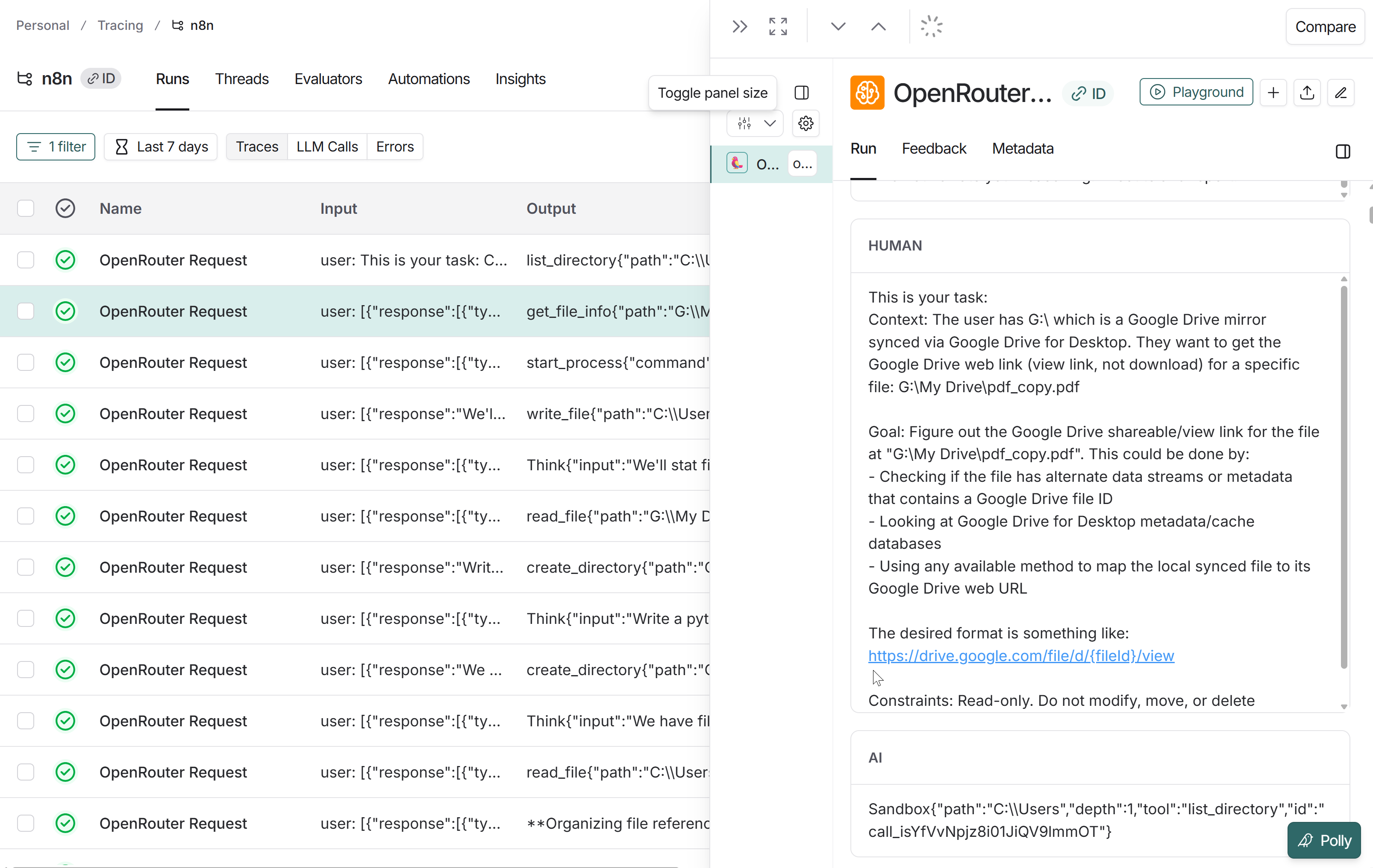 n8n logs in LangSmith