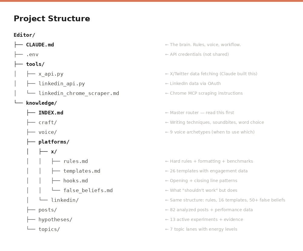 I'm going to show you what that system looks like, how it evolved, and why the architecture matters more than the content it produces. You can drop the whole structure into Claude and use it directly, or treat it as inspiration to build your own.